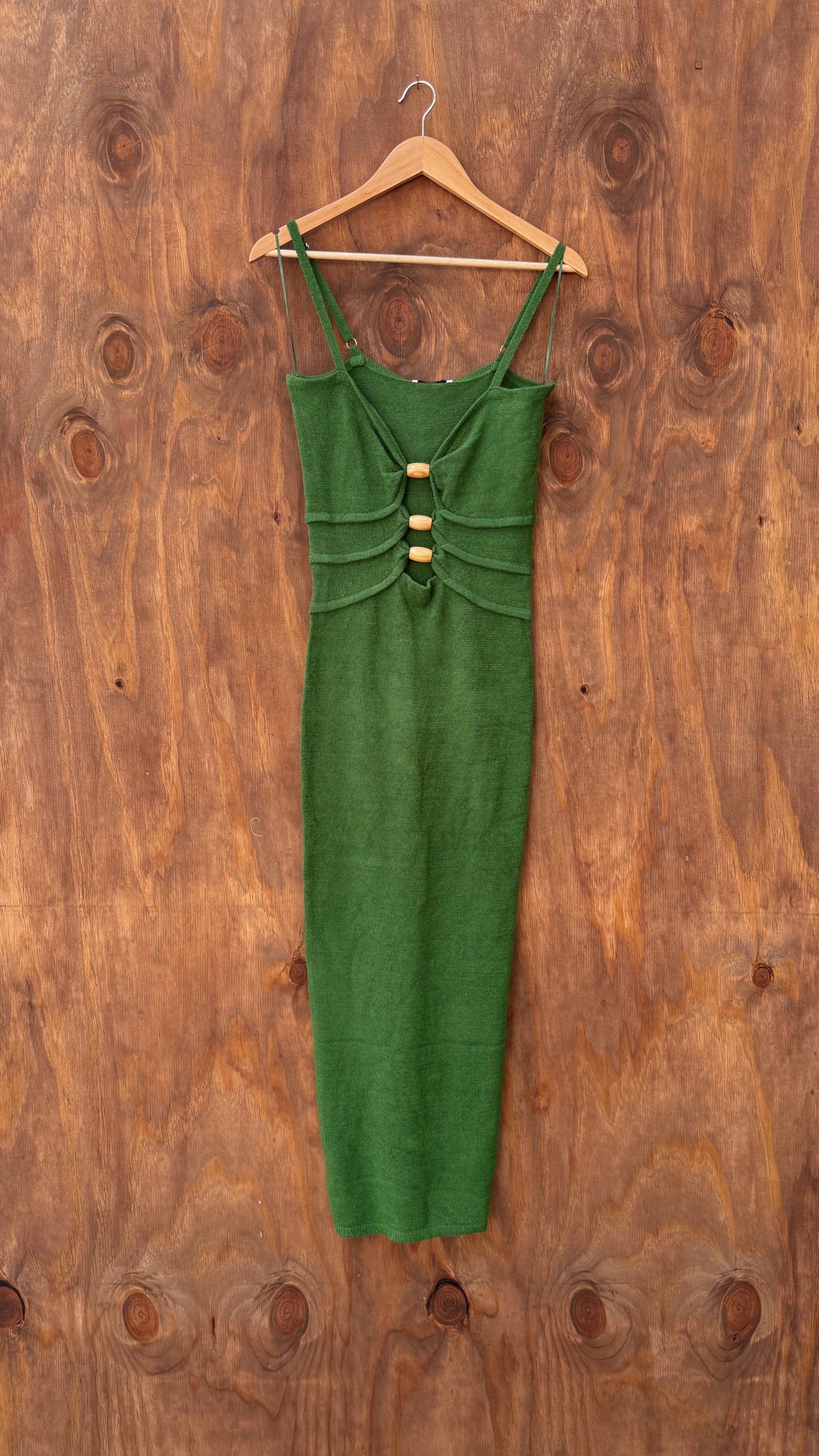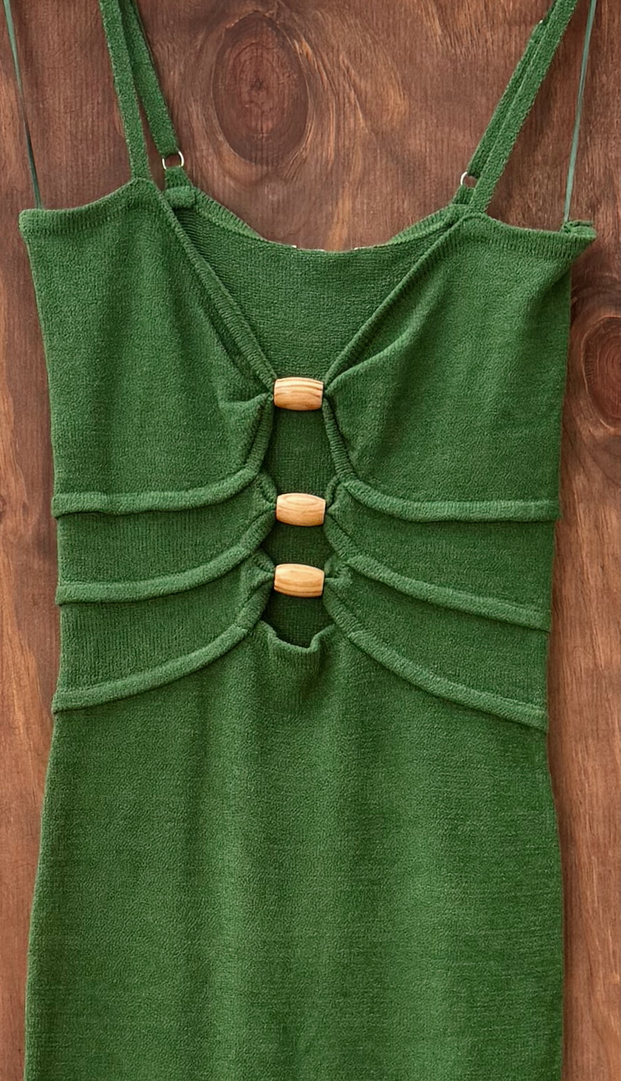 The Evergreen Dress features a midi-length silhouette and an open front design, accented with subtle beaded detailing for just the right touch of texture. Crafted from a breathable blend of acrylic and rayon, it feels light and effortless—perfect for warm days or a night out.