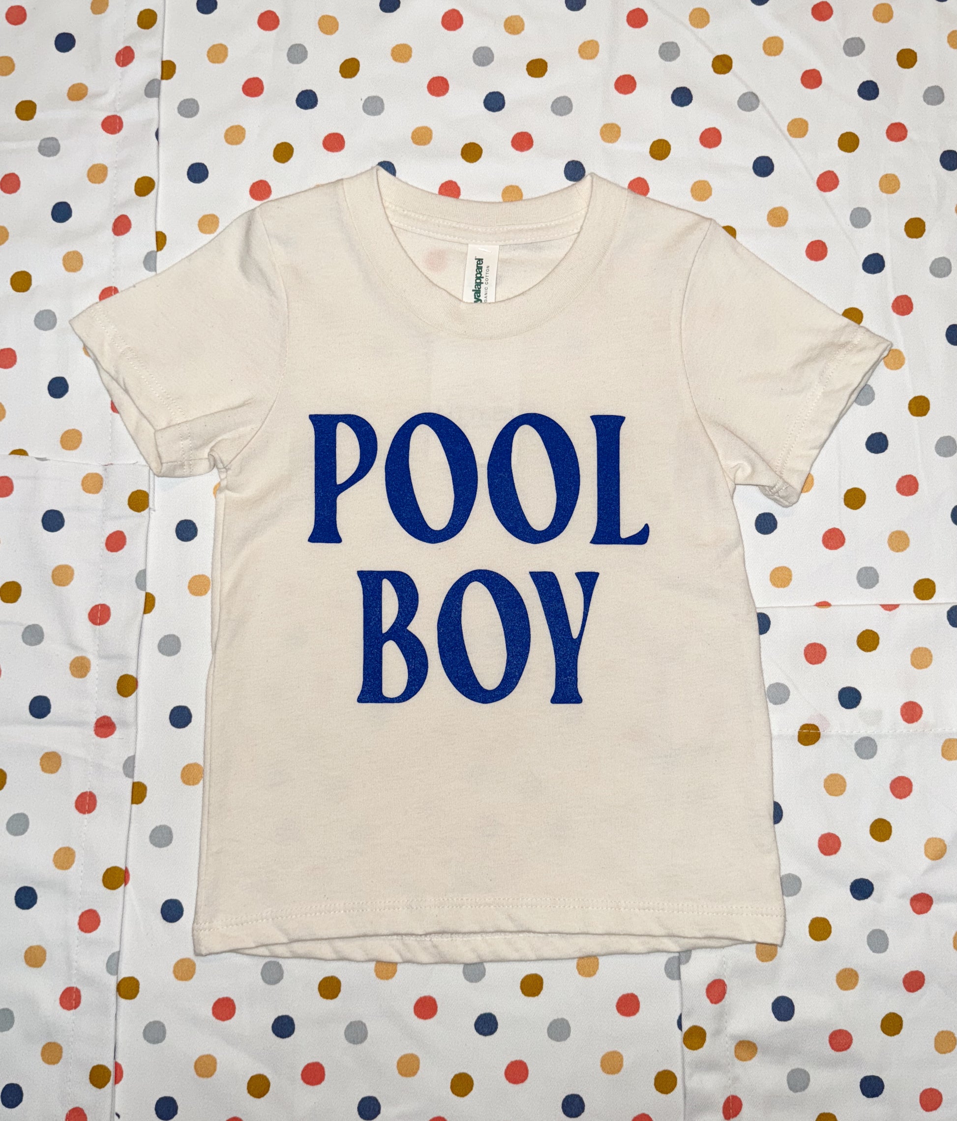 Cool, classic, and ready for sunny adventures — our Pool Boy tee is the ultimate summer staple for your little swimmer. Made from soft, high-quality cotton, this crisp white shirt is accented with bold royal blue lettering that pops with playful charm.
